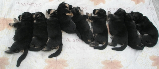 德牧仔德国牧羊德国牧羊犬出生后,要每日观察几次,防止德牧母狗压伤仔狗。初生仔狗不会自行排粪排尿,需要母狗用舌头舐仔狗的腹部、肛门等部位,仔狗才能排出,假若德牧母狗未能做到,必须由主人来帮助。